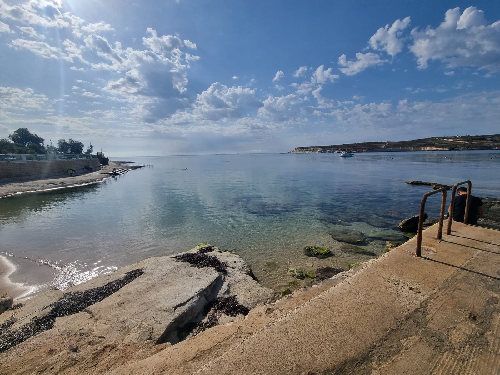 Some rocky patches on the sides of the bay